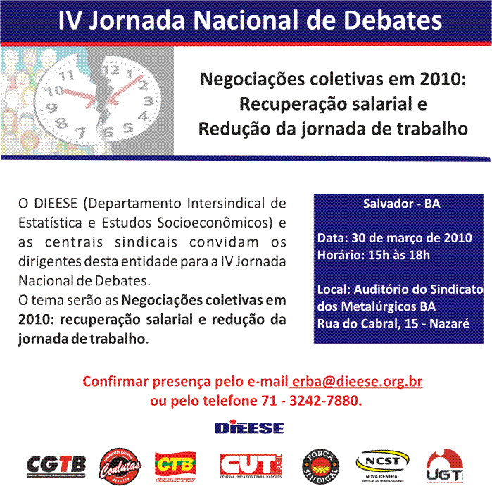 Mais um ciclo de debates foi realizado em todas as capitais brasileiras, desta vez para discutir Negociações coletivas em 2010: Recuperação Salarial e Redução da Jornada de Trabalho. O DIEESE e as sete centrais (CGTB, CSP-Conlutas, CTB, CUT, Força Sindical, NCST e UGT) começaram a atividade em 23 de março de 2010.